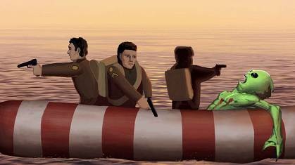 科⾥:所以,事情发⽣后,他们⼀直保持着背靠背的防守姿势,直到⼏个⼩时后他们获救。其中两个⼫体被同伴拉回⽔中带⾛了,我想你会这样叫它们。他们抓住另⼀个⼫体的肩膀,⼀直拉起来,因此,他们就能有证据展⽰。当他们被海军救起时,海军没收了这个⼫体。⽽最后的报告是,这些⼈整晚在寒冷的⽔域,被鲨⻥袭击后,都神智不清了。