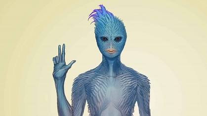 科⾥:最引⼈注⽬的是有⼀个看起来像⽓球的东⻄漂浮在头顶上。它有⼀条带连接到头部眉⼼第三眼的位置,这个巨⼤的⽓球⾥,充满了⼀些液体。当他转过头来时,它也会移动。它会像晃动⼀样,四处浮动,因为他在转头。很明显,这与他的沟通⽅式有关,也可能⽤来探测周围的环境。然⽽,有趣的是,的确如此——并没有看到它传达出太多信息——但后来确实看到了⼀些动静,在它周围的⽔中,出现了少量闪光。