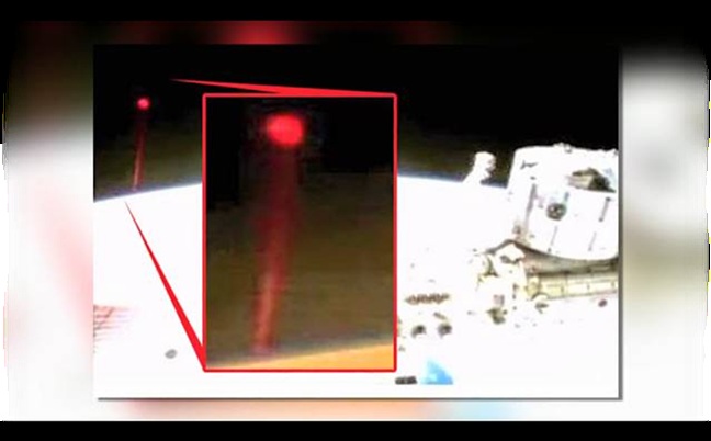 ⼤卫:我们现在来看⼀段视频。这是国际空间站在2014年12⽉5⽇所拍摄的⼀个短⽚。你看到的是⼀个⼩红点,看起来像是激光光束。我们看到的是⼀个红⾊的球体,看起来是⽉球⼤⼩的1/4或1/5,看起来有⼀道红⾊光束射向那⾥。我们看到的是什