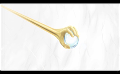 科⾥:全部是⼀体做成的。房间并不是⾮常的⼤。⼤⼩和⽐较⼩的传送⼝房间差不多。我向上看到⼀个⾦杆从房顶伸出,杆上有⼀只持有⽔晶球的⼿。