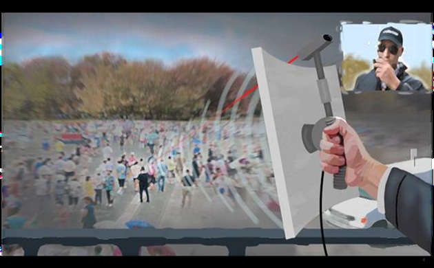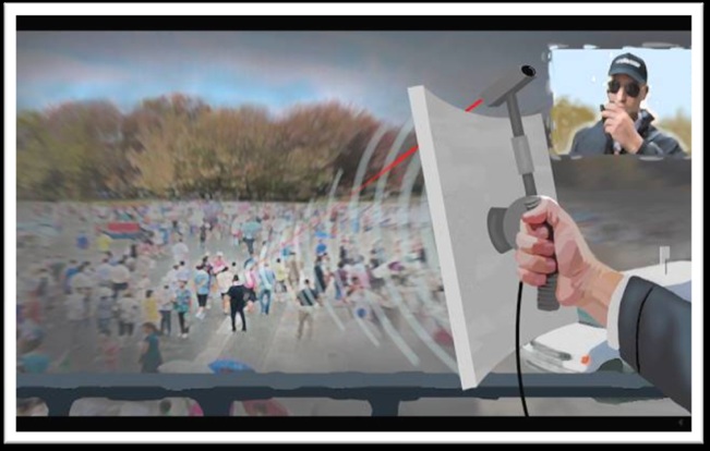 科⾥:是的,任何⼀个⼈。这个技术最初只能⽤超低频波(ELF waves)。两者中都有⼀个叫“弥散反应”,就⽐如你打开⼿电筒。即便是很细的光柱,你离墙⾛得越远,光圈就越⼤。