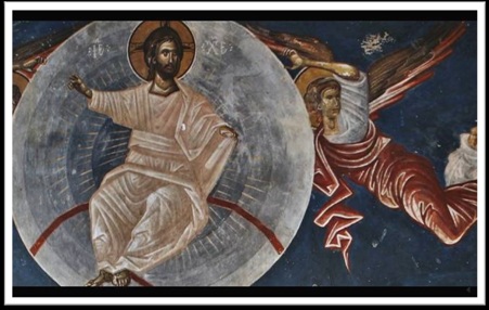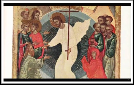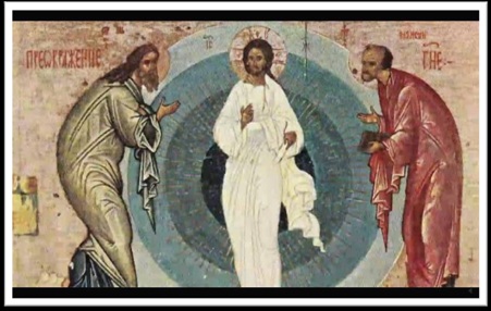 威廉姆•亨利:对吧?在这⾥你还能看⻅在两边的这两位。他们是摩⻄和以利亚,凭空突然现⾝。他们肯定也是扬升的神灵,有能⼒随意凌空来去。他们⾃⼰可能也在蓝球内。所以是很重要的图像。它所要传授的消息就是他们是这样通过艺术和圣像来发送变形的振波。他们管它们成为神圣的传送⼝或是圣镜。那就是他们给这类圣像起的名字。