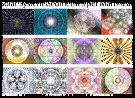 ⼤卫•威尔科克:在我的第⼀本书《源场》中我描述了约翰•⻢蒂诺的研究,他写了⼀本很有趣很先锋的书叫做《太阳系中的巧合⼩册⼦》。当时很疯狂,因为我已经写完了⼀整本书,就在最后⼀刻。这本书被递到我⼿中,我修改了整本书,还在最后加了关于他的⼀章。他做了这些事情:他研究了⾏星轨道彼此之间的关系。然后他发现这些轨道可以被完美地归纳为⼀系列嵌套的⼏何体。⼤部分的这些相关关系,我们说的是正多⾯体和⽴⽅体、四⾯体、⼆⼗⾯体,也就是⼆⼗⾯等边三⾓形组成的多⾯体。⻢蒂诺的太阳能系统的⼏何形状看起来像是舞厅的闪光灯。⼗⼆⾯体,也就是⼗⼆⾯五边形。正多⾯体