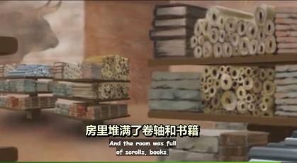 科⾥:他们带著我们直接穿过了雪墙,那个房间灯⽕通明,房⾥堆满了卷轴和书籍,很明显这⾥就是图书馆,那两个地下族⼈⾛到⼀个特别的区域,他们很清楚那⾥是什么,打开了⼀个可折叠的盒⼦,然后拿起那些⾦属卷轴——