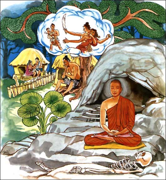 舍弃恶念、恶行,过着调御身心的生活。