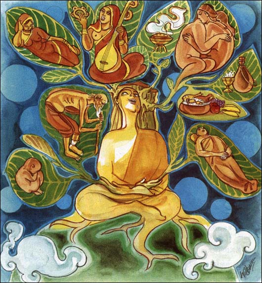 树根深空的大树,砍了后还会重生。有爱欲的潜在,苦不断重生。