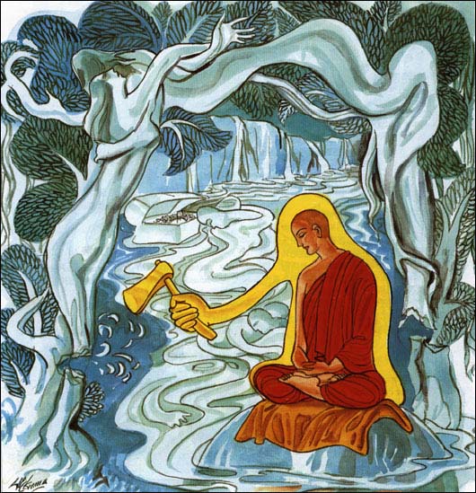 欲念滋润恶欲,使它茁长。以智慧弃除欲根。