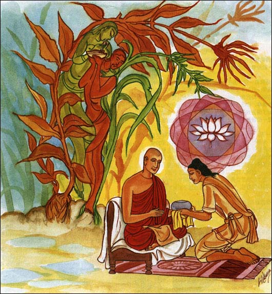杂草损害田地,念欲危害世人,布施与离贪者得大果报。