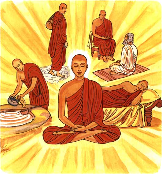 心喜于禅住于定,独居知足名比丘。