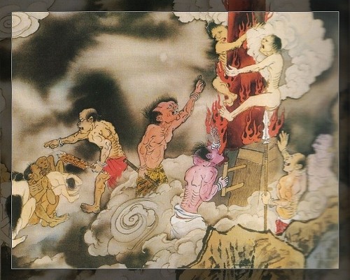 | 地狱道 详情请见《地藏菩萨本愿经》 因果实鉴-地狱变相图 |