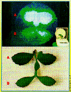 俄罗斯生物物理学家亚达曼科(Viktor Adamenko)在一九七五年的叶子魅影效应是另一项经典突破。当时亚达曼科正在研究克瑞安摄影术,这种技术是把叶子或其它生物放在通电的克瑞安板上,就会看见模糊的电流在生物四周形成美丽的光晕。亚达曼科剪下半片活叶子放在克瑞安板上,令他惊讶的是,板上竟然出现了另一半叶子的幻影,时间有十到十五秒。全球各地有许多科学家都复制了这个实验。普通的电磁能量应该无法制造出这种效应,但是源场概念却可以加以解释。每一种生物的DNA都会储存并释放光子,就算把DNA移开,光子还是会留在原地达三十天之久。我们几乎可以确定,这就是叶子魅影效应的原因。因此,假如我们先把一整片叶子放在克瑞安板上久一点,说不定稍后被剪掉的叶子幻影会持续得更久,因为克瑞安板上的叶子已经在源场内建立更强的螺旋流(spiral flow) 。