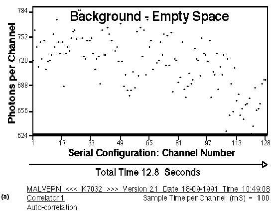 DNA物质未放入散射室时,没有任何幻影DNA场(phantom DNA fields)呈现,散射光的自相关函数如图a所示,表明背景噪声的强度非常小而且分布是随机的。