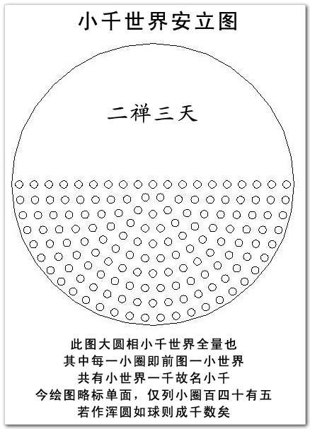 注:亿有四种。瑜伽略纂二曰:“西方有四种亿:一、十万为亿。二、百万为亿。三、千万为亿。四、万万为亿。”按照现在的算法,大千世界内有1000x1000x1000即10亿个小世界。