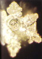 从这些照片里,我们可以看到,一滴水的结晶反映出整体泉水的形态,记录着它的来源,它的环境的整体图像,水就象一幅全息照片。了解激光成像的人知道,一张全息照片即使裂成碎片,任何一小片都能反映原来照片的全貌,以上水结晶的情况与此同理。