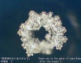 日本IHM研究所的江本胜博士(Masaru Emoto)等人自1994年起,以高速摄影技术来观察水的结晶。他们新近发表了实验结果《来自水的讯息》一书,证明带有「善良、感谢、神圣」等的美好讯息,会让水结晶成美丽的图形,而「怨恨、痛苦、焦躁」等不良的讯息,会出现离散丑陋的形状。而且无论是文字、声音、意念等,都带有讯息的能量。