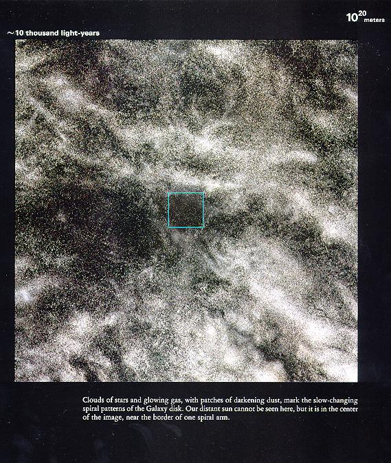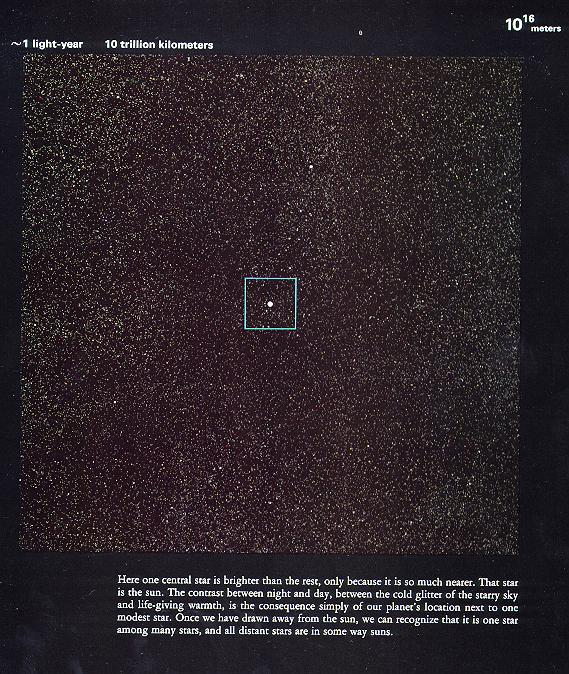 在那里,那里是家园,那里是我们。在那里,你爱的每个人,你认识的每个人,你听说过的每个人,以及在这个世上存在过的每个人,他们都在这里度过了自己的一生。聚集在这里的,是我们的欢乐和痛苦,是成千上万的宗教信仰,意识形态和经济学说。每个猎手与觅食者,每个英雄与懦夫,每个文明的缔造者和毁灭者,每个国王与农夫,每对年轻的情侣,每一个母亲与父亲和充满希望的孩子们,每一位发明家与探险家,每一位高尚的教师,每一位贪腐的政客,每一位超级明星,每一位最高领袖,人类历史上的每一位圣人和罪人,都生活在这里,如一粒微尘,悬浮在一束阳光之中。——《暗淡蓝点》