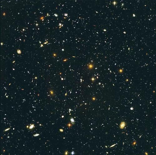 太空望远镜哈勃,将它的镜头对准夜空里的一个小角落。