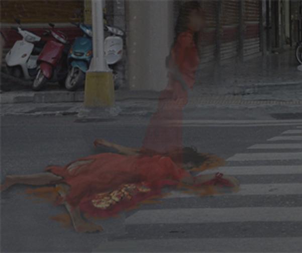 〔记者童涵旎/高雄报导〕越南女子丁氏享上周六骑机车行经高市扩建路与成功二路口时被货车撞死,警方事后调阅路口监视画面,赫见丁氏享命丧轮下那刻,竟有一长发、身着越南传统长衫的女子影像从货车旁冒出,仿佛灵魂出窍脱离身体,吓得员警头皮发麻。