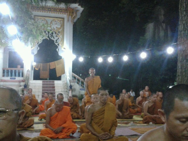 这张照片拍摄于去年春节后不久。当时,泰国一富人家为超度亡故的少女,特意请来很多的中国和泰国僧人一起念经,地点在泰国清迈某寺院。就在中泰两国僧人念经超度的过程中,突然大家发现少女的鬼魂冉冉升起,缓慢地,最终上升到高空不见了(大家都认为她升天了)。由于僧俗众多,过程中大家没有害怕的感觉,反而很欣喜看到她升天,并且有很多人掏出手机拍照。正在念经的来自中国的这位法师看到这个景象,也赶紧掏出他的摩托罗拉手机拍了一张照片,接着再继续念经。照片如下