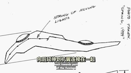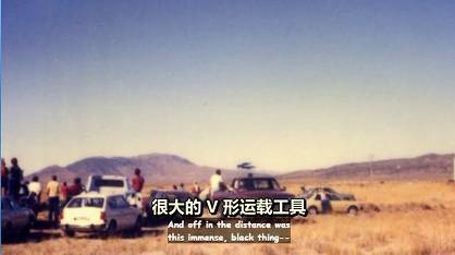 ⻢克:这是我认识的⼀个⼈,名叫阿瑟•利德,在1982年拍摄的照⽚,他当时开⻋游览北加利福利亚,正开到雪德维尔以北约⼗英⾥处,他看到⼀⼤群⼈,将⻋停在路边,他们似乎都在朝⻄边看著什么,他出于好奇,也停下来去看,他看⻅在远处有⼀个很⼤的⿊⾊物体,很⼤的V形运载⼯具,它的形状很像,洛克希德臭鼬⼯程的产品,因为它拥有相同类型的多⾯平⾯,像隐形⽕那样,整个⻜机看起来像很⼤的⿊⾊V字,在两个机翼或腿部中间,随便你叫什么都⾏,这些都⾮常厚实没有任何空⽓动⼒学原理,⽆论是哪⽅⾯:形状、形式都没有,但就是⼀个⼤的⽩⾊球体,然后很前部的地⽅,所有的东⻄⼜都合在⼀起,那个东⻄的表⾯有接缝,看起来像是这个⻜⾏器的不同部分,可以铰接并折叠成三⾓形,有⼀系列的红灯从⿐⼦那个部位,向后延伸到机翼连接在⼀起的机⾝部分,那个东⻄⽅向朝下侧向左边,它悬停的位置⼤概距离地⾯可能有250英尺,可能距离公路是四分之⼀英⾥到半英⾥,⾮常⼤,他觉得,那个东⻄⼀边的⻓度介于300到600英尺之间,⼤概有那么⼤,他说那个东⻄发出⼀种低调的脉动嗡嗡的声⾳,⼏乎就像在科幻电影中听到的那种声⾳,但他说那个声⾳很有⼒很响亮,就好像在胸前感觉到振动与共鸣的那种声⾳,那⾥的⼈们都停下了⻋,划著⼗字就像你在美国经常看到的,那些有强烈宗教信仰的⼈,哭泣跪拜向上帝祈祷,想从邪恶中解脱出来那样,还有其他⼈跑向它,挥著⼿说带我⼀段,还有⼈在那⾥嘴上惊叹著,就像他们在国庆⽇,看烟花表演⼀样,在照⽚中前⾯的地⽅,你可以看到有⼈站到了⻋上,你是从背后看到他们的,所以⽆法看清他们在做什么,但是很多⼈的⼿臂是这样的,就像他们⽤望远镜看⼀样,还有其他⼈只是站在⼀边,静静地看著这⼀切,但他说那个东⻄停在那⾥,⼤概有半个多⼩时,这就是为什么那么多