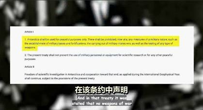 科⾥:对,但是公开谈论这件事的重要性在于,我相信是在1959年签署了⼀份南极条约,在该条约中声明,任何战争武器不得在这⽚⼤陆开发或使⽤,只能⽤于和平⽬的。