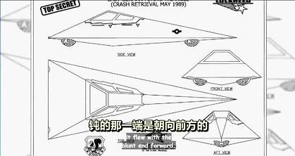⻢克:因为我的电脑遭到⿊客⼊侵所以我去到了⼀间⼩型⽹吧,来借⽤他们的电脑,当我正忙着查看电邮,在⼀旁我听到两个⼈之间的对话,他们在讨论铁磁流体——油基流体,因为它们内含铁⾦属所以其中有会对磁性产⽣反应的⾦属微粒,⽽他们在猜测这是否与推进系统有关,所以我就竖起了⽿朵稍微的专⼼在听,那个⼈提到某个载具的坠机事件,所以我就问你们俩在说什么?喔,我们不能公开讨论,我就说,好吧让我告诉你我所知道的,如果你觉得对你来说够有意思,你就告诉我你知道的东⻄,这个嘛这两⼈其中⼀⼈曾待过军队,他曾是某个刚成⽴的集团或单位的成员,⽽且该集团还未载⼊名册,后来我也发现他们就是⽤这种⽅式执⾏许多机密性⾏动,他们会先设⽴⼀个单位但在还未载⼊名册之前,还未成为历史记录的⼀部分,⼈们就已经在那个单位开始⼯作,他们会出去执⾏任务,然后之后这个单位才会去登记它的存在,但在那之前是完全⽆法通过《信息⾃由法》来索取信息,因为它还未正式存在,⽽这个单位就是这样操作的,就在冷战尾声正当苏联垮台,⽽且⼤家纷纷在谈论东⻄德的统⼀,当时有双重间谍——为美国情报局⼯作的⼈渗⼊了东德政府,⽽这位年轻⼈参与的任务,就是要渗⼊东德——以极低空⻜⾏⽅式秘密进⼊该区来接回某些在内部担任双重间谍的⼈,因为他们很担⼼⼀旦政府开始垮台,这些⼈可能会遭到谋杀,⽽他们在任务进⾏到⼀半——正要去会合点来接其中⼀位⼈⼠——他们这时就接到指令要求转往这个坠机地点,这个交通⼯具本⾝我并不知道它的名称,但我可以跟你形容它的样⼦,想象⼀下有⼀个很⼤的⿊⾊箭头,⽐较钝的那⼀端在这⾥,⽽尖锐的那⼀端在那⾥,可是当它在空中⻜⾏,钝的那⼀端是朝向前⽅的,它的驾驶座舱⻓得很像F-117A隐形战⽃机的座舱,在窗户四周有锯⻮状边缘,其顶罩的边缘也有朝向⻜⾏器⾥⾯的锯⻮状图案,如果迎⾯来看它看起来像个三⾓形,从侧边看就好像其中⼀⾓被往外拉的⾦字塔,在前⽅每个⾓落底下有⼤约直径2.5——或⼤概24⾄30英⼨的⽩⾊球体嵌⼊在载具机体,前⽅的每个⾓落⾥⾯,⽽且在⼤约后⽅三分之⼆之处,在⻓⻓的尖端位置,安装了第三个球体,这些球体是由三个⽖⼦扣紧的,就好像戒指镶的珍珠⼀样这个⽖⼦是银⾊的看起来好像可以移动并指向不同⽅向,也许是⽤来操纵载具的,等他抵达现场要进⾏收拾残局的⾏动,有⼏位⾝穿⽩⼤⾐全副武装的技术⼈员,把座舱重要的零件搬出来,他们把零件移出,要带到他处,这个载具的⻜⾏员因为使⽤这个系统,以低空⻜⾏⽅式执⾏某种监视⾏动⽽坠机,它失事地点是在东德距离⼀个名叫哈雷的城市,⼤约10公⾥的⼭⾕,他⻜过⼀个⼭脉,⽽载具左前⾓斜撞到⼀棵⼤的松树,整个⾓落都被削掉了,⽽且把那个⾓落的球体压碎,那个载具⻢上从左侧往下坠,因为它在推进机制的位置,失去了⽀撑,为了避免坠机,他试着尽可能往右斜侧⻜⾏,然后把⻜机头拉起来,但它还是撞上了⼭丘,它是先撞击到机尾,在撞上的时候,机⾝的结构因此裂开,那⾥就是嵌有第三个球体的细⻓尖端处,那个球体开始飘⾛,⽽且在他们抵达时仍在⼭丘附近飘来飘去,⽽且那个三⽖的固定器也已脱落,但是球体本⾝⼤部分完好⽆缺,他形容这个物体看起来像⼀个⽩⾊陶瓷的南⽠,并拥有南⽠看得到的那种直线条纹,但是每根条纹,都有像扇⻉状的凸起纹路⼏乎有点像是传教⼠⻛格建筑的⾚⼟⽡⽚,它的形状看起来像是为了要在船舰内部产⽣流动状态⽽设计,在最上⽅的部分是⾦属⾊的通电载体,其颜⾊就像是画笔刷过的铝合⾦⾊,⽽且有好⼏条电线跑出来,他形容这个东⻄离地⾯⼏英尺的距离,在飘来飘去,⽽且每过⼀阵⼦,这个球体就会迅速地旋转并同时上上下下的跳动,⽽且它会移到离地⽐较⾼的地⽅,⽽且在跑出来的⼏条电线之间,会有电流通过,然后它⼜会稍微镇定下来,所以他们的任务是要捕捉这个球体,⽽这个物体过⼀段时间,就会以充满活⼒的⽅式跳舞,所以他们得计时,并等到球体安定下来的时候捕捉起来,他们带着⼀个军队⼀贯使⽤的⼤型的铝质⻩⾊箱⼦,⼀侧有着琴式铰链,另⼀侧则有螺丝扣,这种扣⼦⼀旦关起来就可以锁很紧,当他们拿着这个箱⼦像这样⼦靠近它,⽽箱⼦的铝合⾦会明显地反射出这个物体产⽣的磁场,所以当他们靠近球体时,球体就会飘⾛,与铝合⾦互相排斥,他们想了⼀个办法,他们把琴式铰链拆开把扣针拿掉,来移除箱⼦的盖⼦,他们将盖⼦滑到球体的底下,然后把箱⼦的下半部,拿到球体上⽅把铰链系上关上螺丝扣,然后把⼿移开,结果箱⼦就…,像墓碑⼀样的⽴了起来,根据他们的描述是蛮吓⼈的,但是他们找来了——这真的很难以置信——,他们找来了⼀架CH53超级海种⻢式直升机,并以⾄少⼀百英尺⻓的合成系绳来钩着这个箱⼦,⽽因为其产⽣的磁场太过强⼤,他们担⼼这会扰乱直升机的航空电⼦技术,所以他们就赶快离开了,⾝穿⽔兵短⼤⾐及守夜⼈帽⼦的海豹特遣队也在现场,他们拿着M16步枪,和⽴式榴弹发射器,他们派遣了两架备有导弹⽽且全副武装的眼镜蛇直升机在现