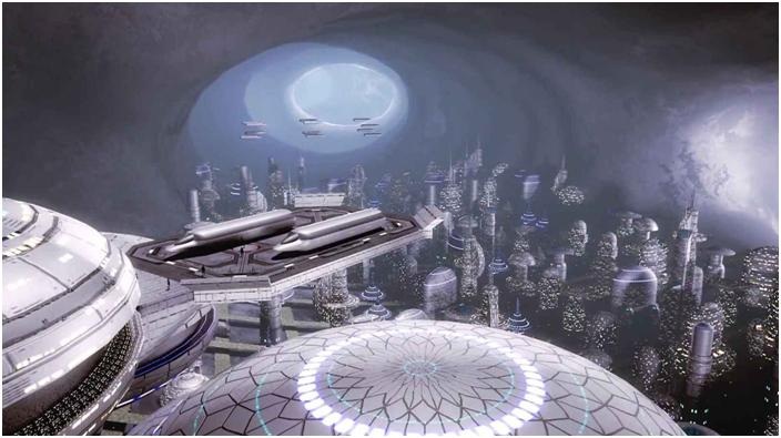 科⾥:球体的内部,是所有城市联合在⼀起的地⽅。