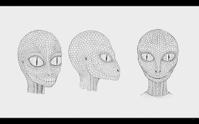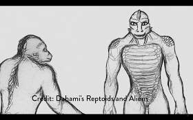 科⾥:好的,蜥蜴灰⼈看起来它们的下颌更窄,头部更加细⻓。这种⻓相眼睛更⼤。它们看起来很像⼈们描画的,你可以看到印在罗斯威尔的⼀个标志上的那种外星⼈,那种典型的灰⼈。