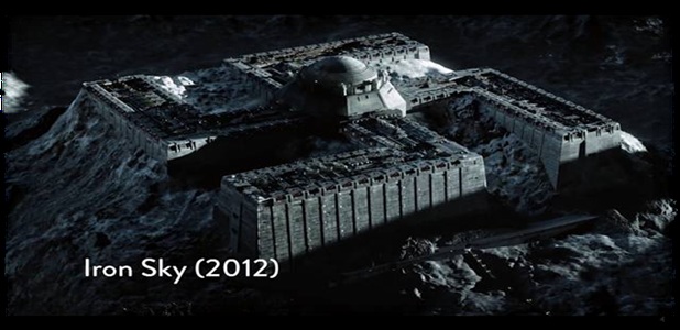 科⾥:本来确实是纳粹徽章的形状,那座建筑现在成了⽉球作战指挥部,被整修过很多次。现在只在⽉球作战指挥部占很⼩的⼀部分,地球秘密太空项⽬经常⽤到这个指挥部。没有⼈能靠近梯形的⽉球基地,除了天⻰⼈和他的⼈类盟友。据称是纳粹⽉球基地的照⽚