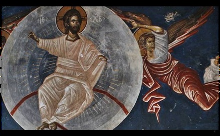 威廉姆•亨利:对吧?在这⾥你还能看⻅在两边的这两位。他们是摩⻄和以利亚,凭空突然现⾝。他们肯定也是扬升的神灵,有能⼒随意凌空来去。他们⾃⼰可能也在蓝球内。所以是很重要的图像。它所要传授的消息就是他们是这样通过艺术和圣像来发送变形的振波。他们管它们成为神圣的传送⼝或是圣镜。那就是他们给这类圣像起的名字。