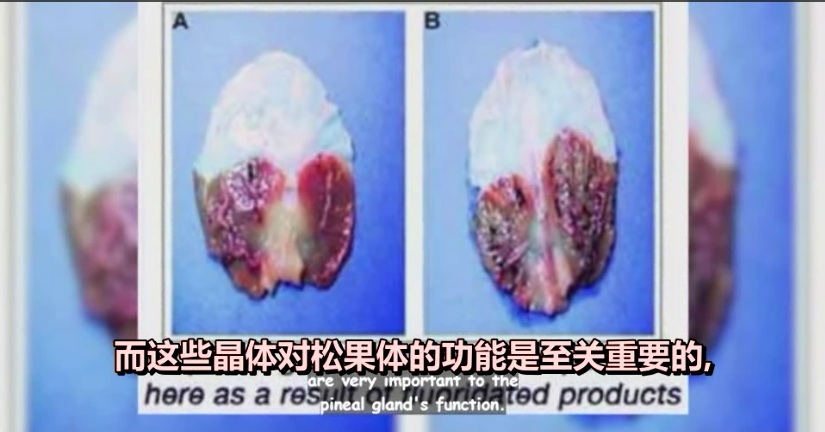 ⼤卫:我在这⾥补充⼀点,与这个有关的信息,以防有观众在这⾥不太明⽩,所说的内容,我的研究已经证实,松果体的内部,就是⽔,⾥⾯含有⼀些晶体,⽽氟化物,我们的⾎脑障壁,对松果体没有作⽤,任何⾎液流动,都可以进⼊到松果体⾥⾯,如果⾎液流动中含有氟化物,它们就会攻击这些晶体,⽽这些晶体对松果体的功能是⾄关重要的,并且最终松果体内就会看上去,像这个X射线上的⾻块⼀样,这实际上是钙化松果体,那么你⽗亲是否谈到过钙化松果体。