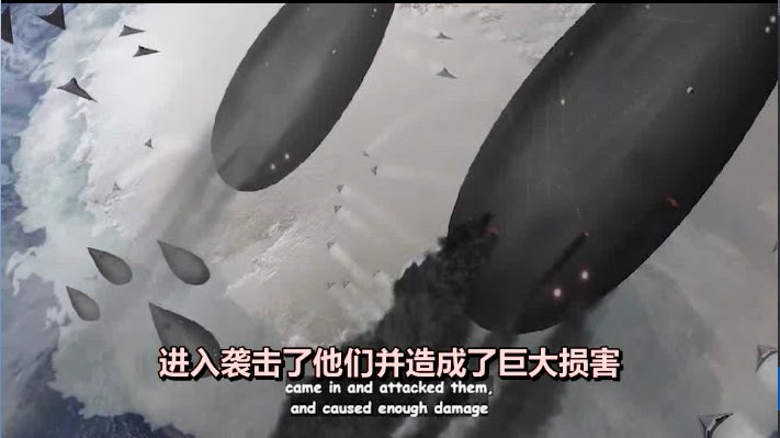 科⾥:对,这些其实是⿊⾊舰队的⻜船,根据智能来判断的话,其中六艘被留在靠近,南极洲海底的地⽅并⼒图离开轨道,有⼏⼗个被描述为三⾓V形,来路不明的⻜船,进⼊袭击了他们并造成了巨⼤损害,因此他们从进来的地⽅撤退了。