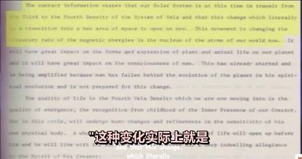 同样的外星⼈也找到了卡拉这是那些外星⼈他们⾃⼰起的名字提供给我们这些预⾔,所以他们还在那⾥内布拉斯加州的那个⼈在线上已经找不到了,但他们找到了卡拉并开始给她提供信息,这也将她调整好能够接收《⼀的法则》,我们现在这⾥看到的就是这本由⻉尔德•华莱⼠写的书它总结了所有这些不同的被接触者在1950年代和60年代所说的,他将所有这些都归⼊统⼀的信息,我将展⽰它的出版⽇期是1972年6⽉,这是从书上扫描的如果你仔细寻找的话可能现在还能找到这本书叫做《空间故事和内部之光》,我将给你们念⼀些⾥⾯的⽂字,我们不会以这种打字的形式来读,如果想看的话可以暂停电视,我会⽤这种⽐较适合的⽅式来读“接触信息声称我们的太阳系正处于转变期”——要记得这是1972年——“从第三密度变为第四密度”这⾥就是这个是在《⼀的法则》之前记录的他们已经开始使⽤“密度”这个词“关于维勒系统”——这是来⾃乔治•凡塔塞尔的信息——“这种变化实际上就是进⼊太空新时代的转变现在正在发⽣,这个运动改变了振动率,即那些我们现在这个世界原⼦核能中的磁能”,杰,这个听起来很像炼⾦术。