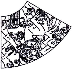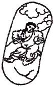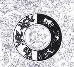 在图的正中央,亦即大轮的轴心部份,是一个小圆圈,圈内有三种畜牲:鸽、蛇及猪;蛇及鸽由猪口而出。