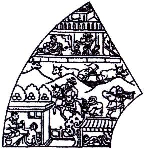 本来不信佛的优填王在恭敬地展开佛画后,便仔细地观看图中的内容及参想画中偈文的内义,同时亦在心中禅思十二因缘的顺逆流转过程、四谛及六道轮回之苦。由于佛陀的加持、优填王的过往善业力及因缘成熟,优填王在当下便证得了阿罗汉圣人的预流果位境界(注:一种修行的境界)。此后,这位国王为佛教亦作了极大的贡献。他的生平故事,可见于《大藏经》中的戒律教法等典着中(注:汉文《大藏经》中之《佛说大乘造像功德经》、《阿含经》及《四分律》等,俱有有关优填王之章句片段)。衲在几年前曾往印尼的浮罗布多(Borobudur)大塔朝礼,留意到塔上的石刻中亦有极多有关此王生平的雕刻图像。