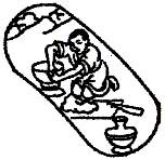 在图中,这一支因缘以陶塑工匠来表义。在他身旁的陶泥,表义无明。这些陶泥经陶匠的运作,而变作各式各样的成品。其中有好的,也有坏的。这一小格,表义说基于无明,便会发作出种种形式不同的善业及恶业。
