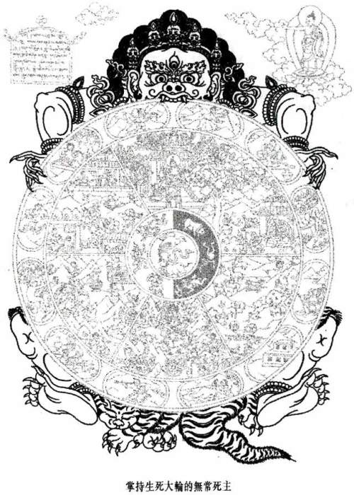 生死之轮,正是开示我们凡夫不断地在六道中轮回之境况、过程及原因,并开示脱离这种无奈境况的方法。虽然六道之苦况包罗万有,但其大概情况已全包含在此图像之中了。