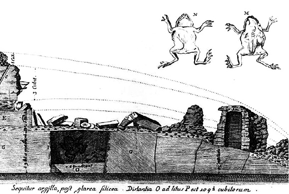 (插图44)1733年,约翰·葛雷博(Johan Graberg)和其他人在瑞典一个露天矿场地表10英尺以下的巨大卵石中,发现了活着的青蛙。