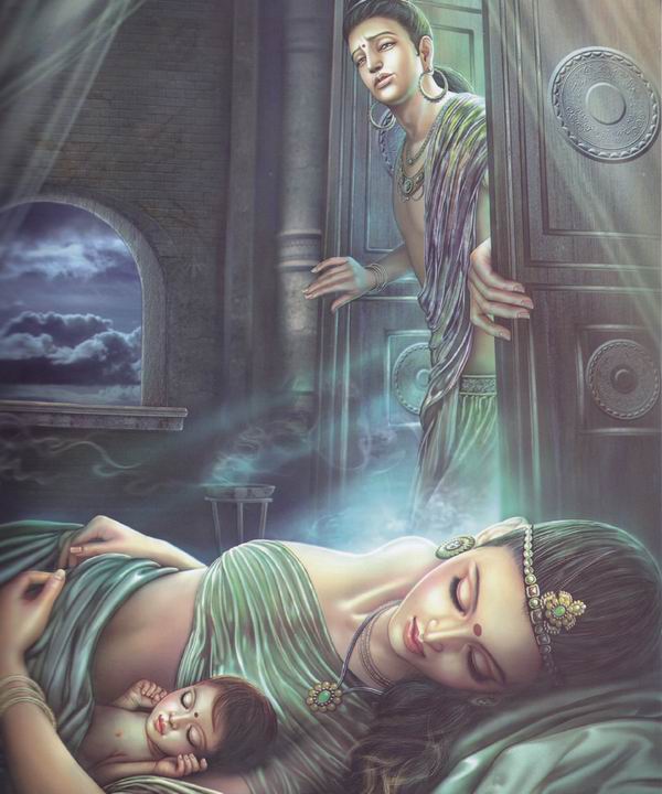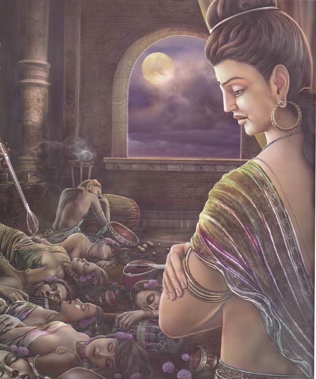 夜别妻儿:一天夜晚,太子悄悄的走出房间,离开了妻子儿子。