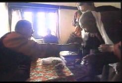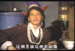 据说,索札巴转世在自己的村庄里,这个男孩这里有瘀伤,他说这是子弹打中的,而且非常痛。这就是索札巴被枪打中的地方。