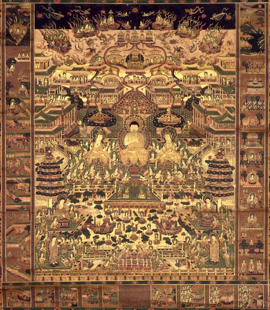 那些经典,对极乐世界的描述及祈愿往生极乐国土的功效,有比恰美仁波切前面所讲更详细的叙述。因此他说“仔细的看看这些经典。”