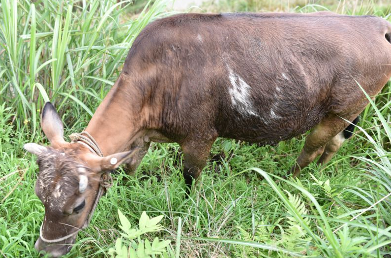 山下一位姓先的本村老农,对此看得清清楚楚,他看见两牛正斗得起劲,突然「牛失后蹄」,一起摔到山下,在山下伸伸腿就没动静了。先姓老农赶紧跑过去查看,到了现场大吃一惊,本生产队最得力的两头耕牛,就这么一眨眼间全摔死了,其中那头黑牛还摔掉了一只角。这老农觉得很可惜,就对着刚死的两头耕牛说:「又没卖你们,又没杀你们,辛苦了大半辈子就这么死了,可惜了!你们俩下辈子去投胎做人吧!」