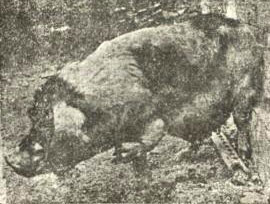 江北某甲,性凶厉,民国十二年时,忽大病,适来一云水僧语之曰:「尔因作恶多,死必坠豕身,宜速忏悔。」某甲时病已垂危,闻之悚然,乃以左手向僧作礼,如僧家之半合掌式。僧曰:「只此一手,诚心礼佛,此手可免现豕形。惜哉,仅此一手也。虽然,因此亦可免除一刀之苦矣。」旋卒,时近邻即生一小豕,前面之左脚仍为人形。行时此脚不着地,时时对人作合掌之状。其家人赎得之,送至上海大场宝华寺放生园内,计今已十年矣。余往该寺见之,询知其颠末,由镜华照相馆摄得其影,因为题记。