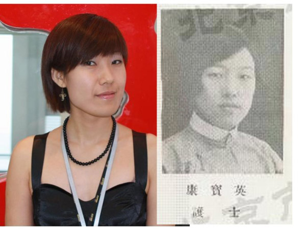 左边今生照片,某部门员工;右边前世照片,女校的护士,表情都没咋变。
