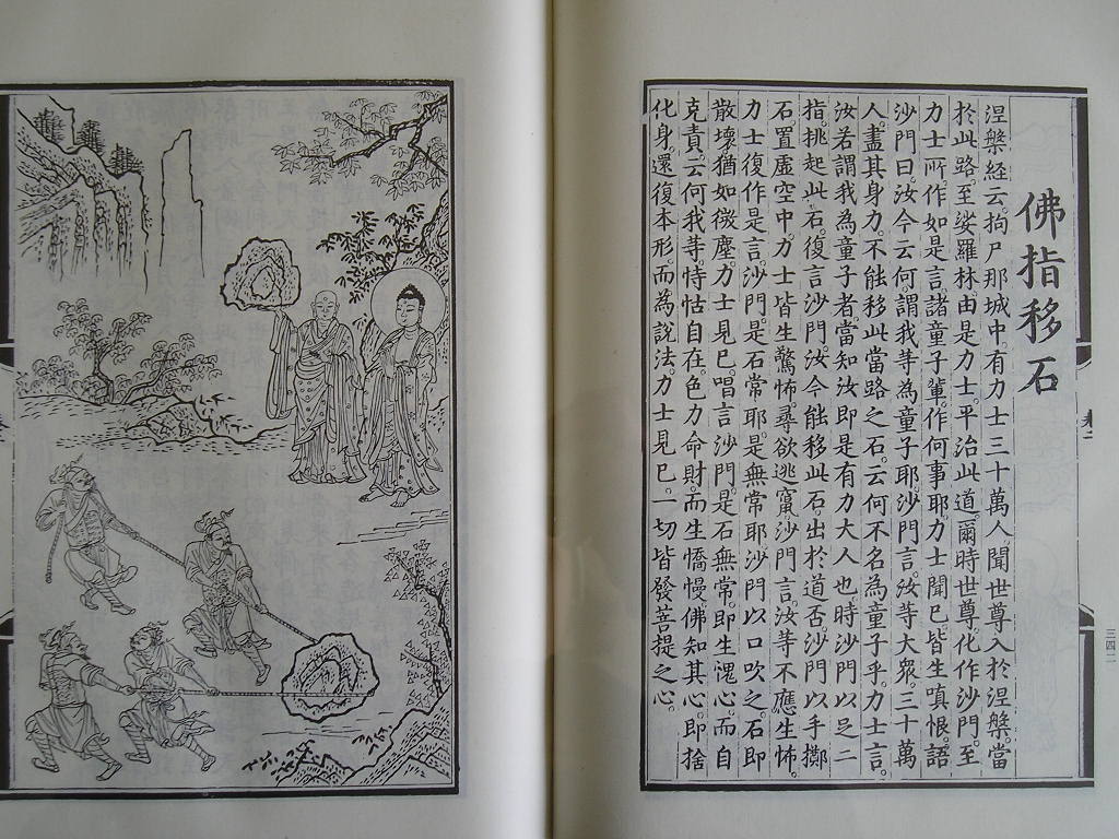 善男子。拘尸那竭有诸力士三十万人无所系属。自恃憍恣色力命财狂醉乱心。善男子。我为调伏诸力士故告目连言。汝当调伏如是力士。时目犍连敬顺我教。于五年中种种教化。乃至不能令一力士受法调伏。是故我复为彼力士告阿难言。过三月已吾当涅槃。善男子。时诸力士闻是语已。相与集聚平治道路。过三月已。我时便从毗舍离国至拘尸那城。中路遥见诸力士辈。即自化身为沙门像。往力士所作如是言。诸童子。作何事耶。力士闻已皆生嗔恨作如是言。沙门。汝今云何谓我等辈为童子耶。我时语言。汝今大众三十万人尽其身力。不能移此微末小石。云何不名为童子乎。诸力士言。汝若谓我为童子者。当知汝即是大人也。善男子。我于尔时以足二指掘出此石。是诸力士见是事已。即于已身生轻劣想复作是言。沙门。汝今复能移徙此石令出道不。我言童子。何因缘故严治此道诸力士言。沙门。汝不知耶。释迦如来当由此路至娑罗林入于涅槃。以是因缘我等平治。我时赞言。善哉善哉童子。汝等已发如是善心。吾当为汝除去此石。我时以手举掷大石。高至阿迦尼吒。时诸力士见石在空。皆生惊怖寻欲四散。我复告言。诸力士等。汝今不应生恐怖心各欲散去。诸力士言。沙门。若能救护我者我当安住。尔时我复以手接石置之右掌。力士见已心生欢喜复作是言。沙门。是石常耶是无常乎。我于尔时以口吹之。石即散坏犹如微尘。力士见已唱言。沙门。是石无常。即生愧心而自考责。云何我等恃怙自在色力命财而生憍慢。我知其心即舍化身还复本形而为说法。力士见已一切皆发菩提之心。