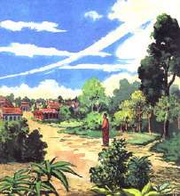 因此,佛告阿难:如果真的如你所说:见性是在你的眼前,你真的能够看见的话,见性便同于外界的物质,是存放在一个固定的地方;那么,你应该在外界所有的事物中,可以指示出来,此是见性,此非见性。现在我与你阿难,同坐在只陀林中,遍观近处的树林殿堂,高至日月宫殿,远至精舍对面的恒河,你阿难试于我的狮子座前,举手指示,阴者是树林,明亮的是日光,阻塞的是石壁,通达的是虚空,如是乃至,一切草木,凡有形相的,都可以指出示人;如果汝身心之前,确实有一见性被你身心所见,你就应该指出那一种是你的见性。假如说:虚空是你的见性,则虚空已经变成见性了,甚么是虚空呢?若果物是你的见性,物已经变成见性了,将何以为物呢?你今既然于万象之中,不能指出何者是你的见性,可知你说:见性是在你身心之前,只是你的妄想情执而已,事实不然。