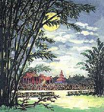 佛又引用第二月为例,因眼睛被捏,于真月亮的旁边,幻见有第二个月亮,其实,是没有第二个月亮的实体。有智慧的人,就会明白,此第二月的出现,是因捏目而有,不捏则无。不应该说此第二月,是真月的原形,或非是真月的原形;更不该说:此第二月是离见有,或是非离见有。此病眼人所见的五色圆影,亦是一样,不可以说,是灯非灯,是见非见。以上总明,妄本依真,离真无妄;犹如狂华依空,离空无华。