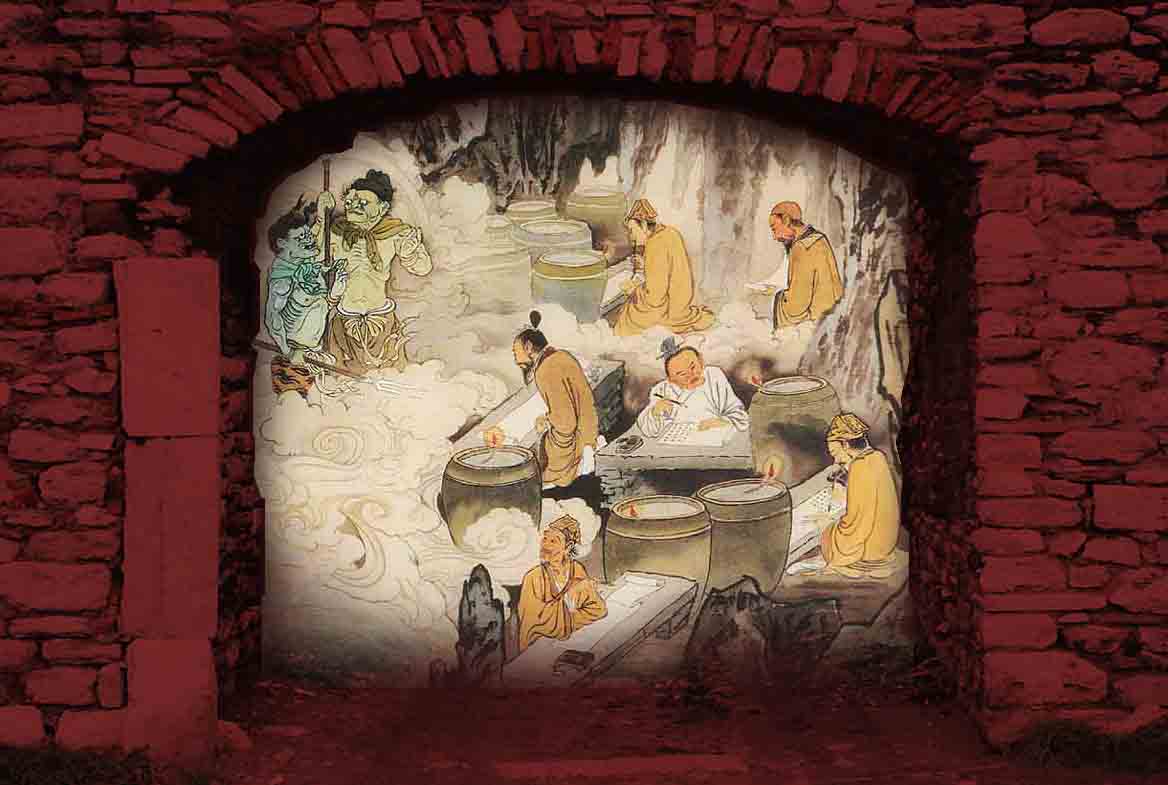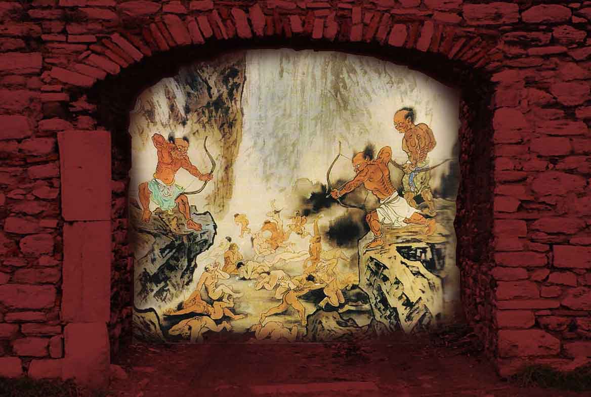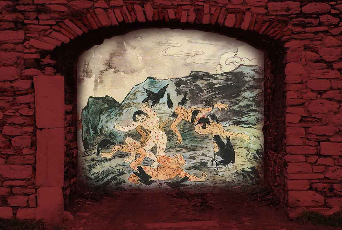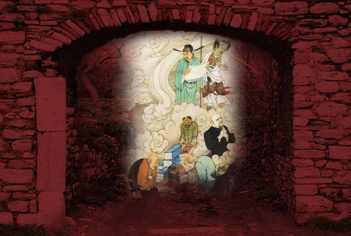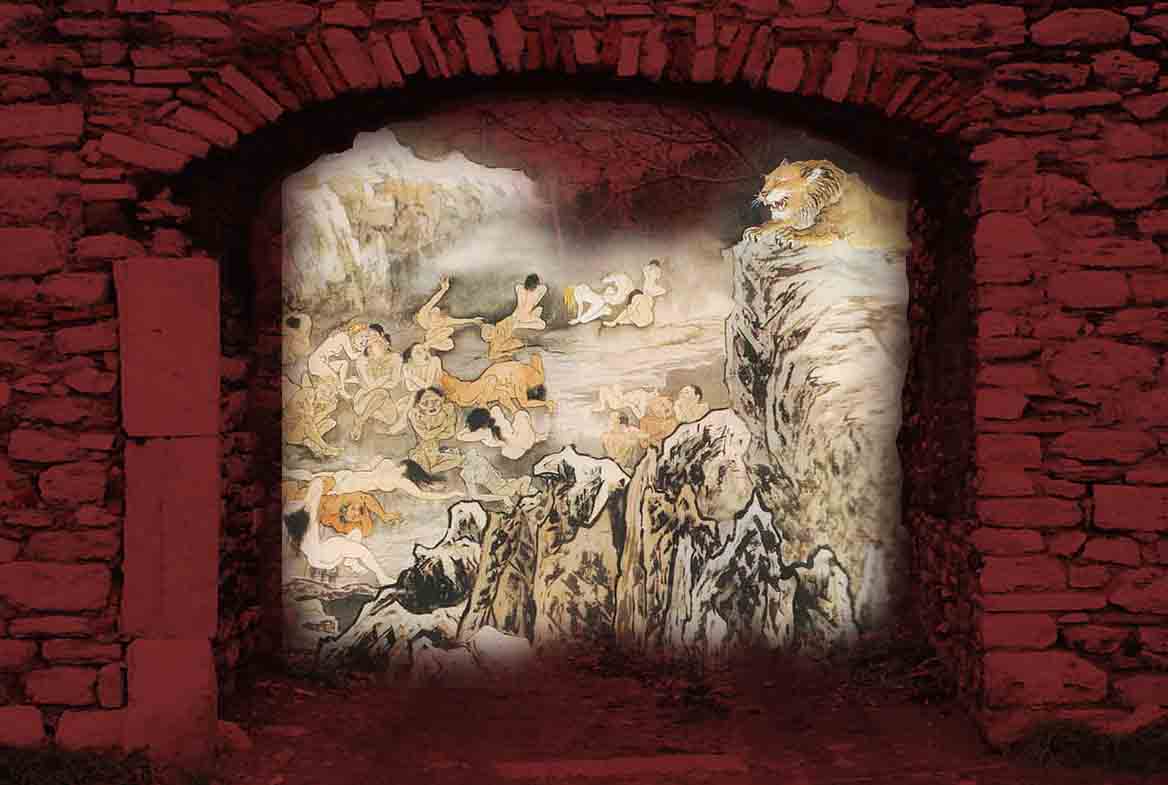 迷朦光中,幾個青面差使,押解一批罪犯,在寒鐵山洞穴中穿梭而過。這批罪犯,個個衣冠楚楚,看得出其生前之顯赫與榮耀,從服飾穿著來看,有不同的階級與地位;有的應該是政客,有的應是掌有權位的學者,在他們的神色之間,依然殘留幾分得意與跋扈。孱雜人群中也有宗教人士、神職道侶,享盡人間一切福報,辜負眾生之供養。此時個個神情凝重,似乎已嗅到「大事不妙」的氣息。