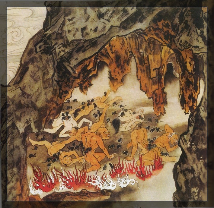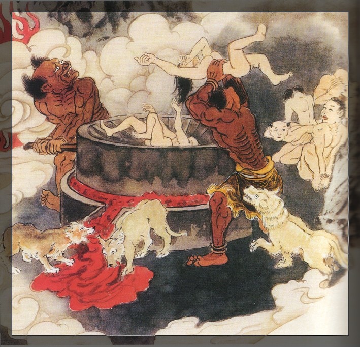 《因果经》云:男子邪淫,娶多妻妾或买春,命终即堕此狱。生前左拥右抱,享齐人之福,死后磨成肉酱,贪图色欲之报,真是奇惨无比!