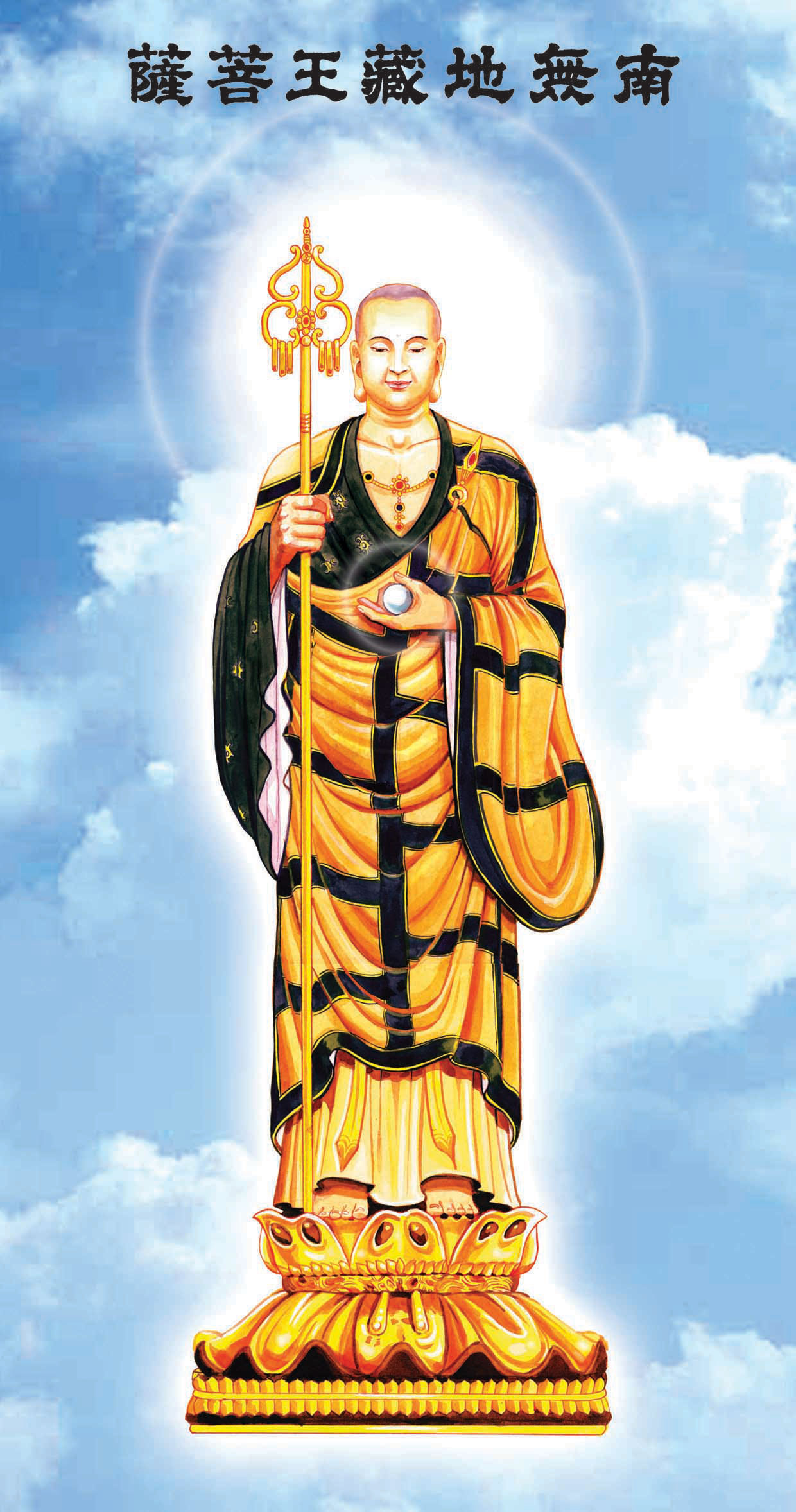 尔时世尊举金色臂,又摩地藏菩萨摩诃萨顶,而作是言:地藏地藏,汝之神力不可思议、汝之慈悲不可思议、汝之智慧不可思议、汝之辩才不可思议,正使十方诸佛,赞叹宣说汝之不思议事,千万劫中,不能得尽。